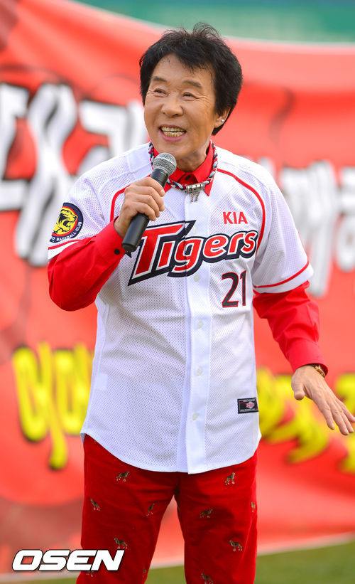 7일 오후 광주 무등구장에서 열리는 '2013 한국야쿠르트 세븐 프로야구' KIA 타이거즈와 롯데 자이언츠의 경기에 앞서 가수 송대관이 멋진 무대를 펼치고 있다