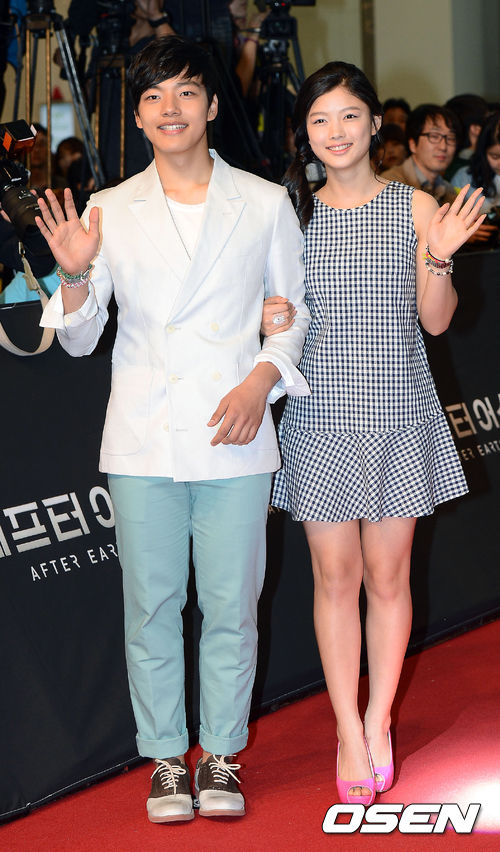 7일 오후 서울 영등포 타임스퀘어에서 진행된 영화 '애프터 어스' 레드카펫 행사에서 여진구와 김유정이 포토타임을 갖고 있다.