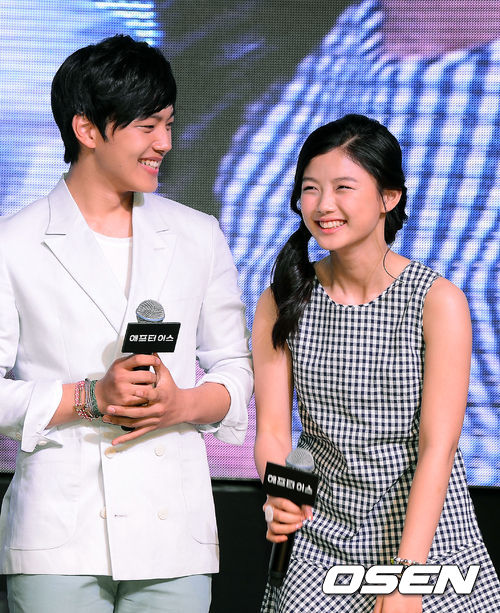 7일 오후 서울 영등포 타임스퀘어에서 진행된 영화 '애프터 어스' 레드카펫 행사에서 여진구와 김유정이 사회자의 질문에 미소를 짓고 있다.