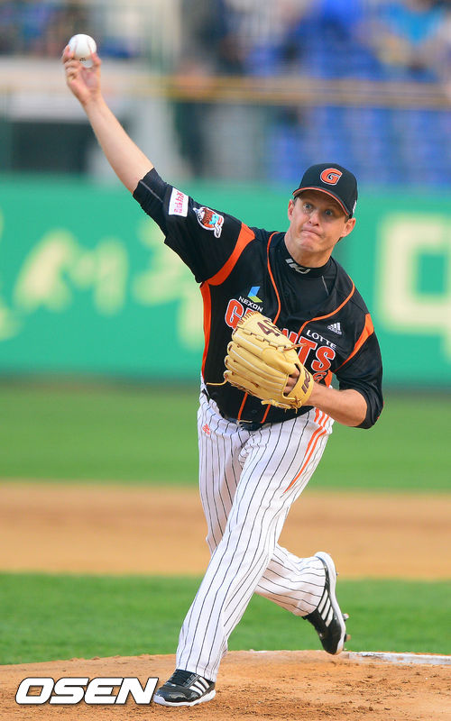 7일 오후 광주 무등구장에서 열린 '2013 한국야쿠르트 세븐 프로야구' KIA 타이거즈와 롯데 자이언츠의 경기, 1회말 롯데 선발투수 옥스프링이 역투하고 있다
