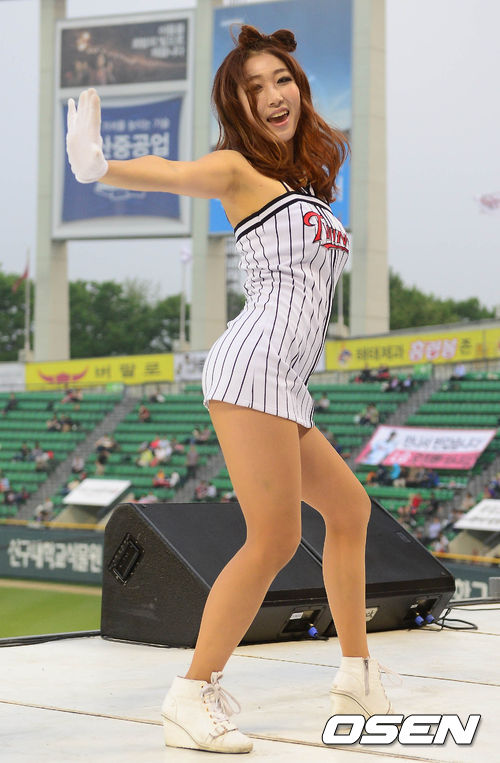 7일 오후 서울 잠실구장에서 열린 '2013 한국야쿠르트 세븐 프로야구' LG 트윈스와 넥센 히어로즈의 경기, LG 치어리더들이 공연을 펼치고 있다.