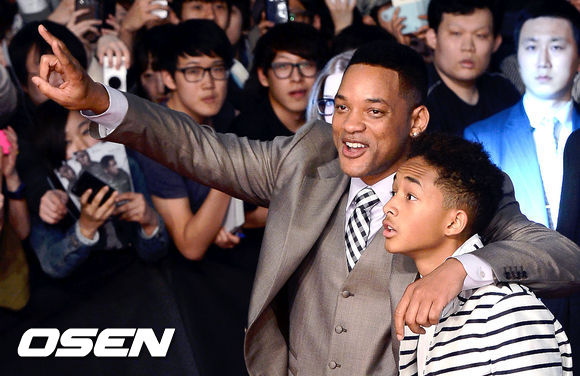 7일 오후 서울 영등포 타임스퀘어에서 진행된 영화 '애프터 어스' 레드카펫 행사에서 윌 스미스와 제이든 스미스가 포토타임을 갖고 있다.