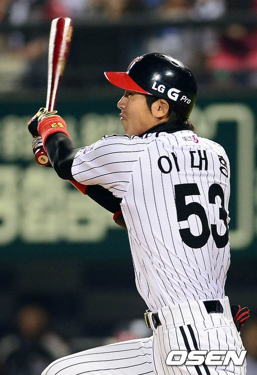 7일 오후 서울 잠실구장에서 열린 '2013 한국야쿠르트 세븐 프로야구' LG 트윈스와 넥센 히어로즈의 경기 6회말 2사 3루 이대형이 내야안타를 치고 있다. 3루주자 오지환은 득점.