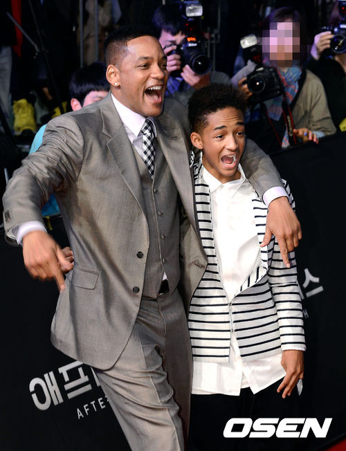 7일 오후 서울 영등포 타임스퀘어에서 진행된 영화 '애프터 어스' 레드카펫 행사에서 윌 스미스와 제이든 스미스가 포토타임을 갖고 있다.