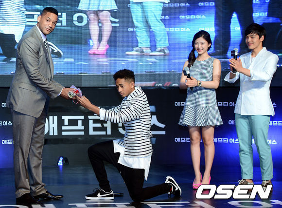 윌 스미스는 7일 영등포 타임스퀘어에서 열린 영화 ‘애프터 어스’(M. 나이트 샤말란 감독) 레드카펫 행사에서 아들이자 배우인 제이든 스미스로부터 카네이션을 선물 받고 격한 감동을 표현했다.