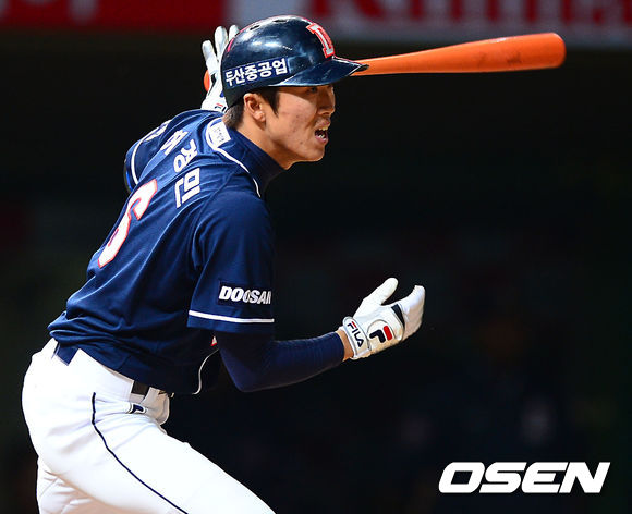 7일 오후 인천 문학구장에서 열린 2013 한국야쿠르트 세븐프로야구 SK 와이번스와 두산 베어스의 경기,6회초 1사 주자 2,3루 두산 허경민이 우익수 앞 1타점 적시타를 날리고 있다.