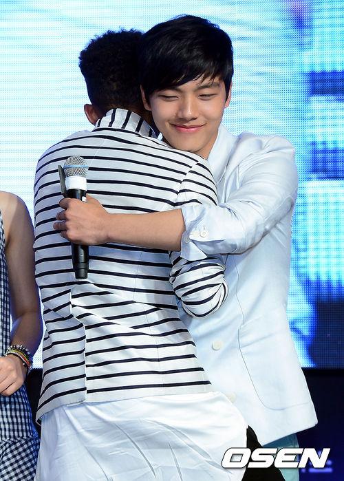7일 오후 서울 영등포 타임스퀘어에서 진행된 영화 '애프터 어스' 레드카펫 행사에서 여진구와 제이든 스미스가 포옹을 하고 있다.