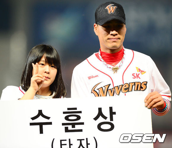 경기를 마치고 SK 김상현이 수훈상을 받고 있다./ rumi@osen.co.kr