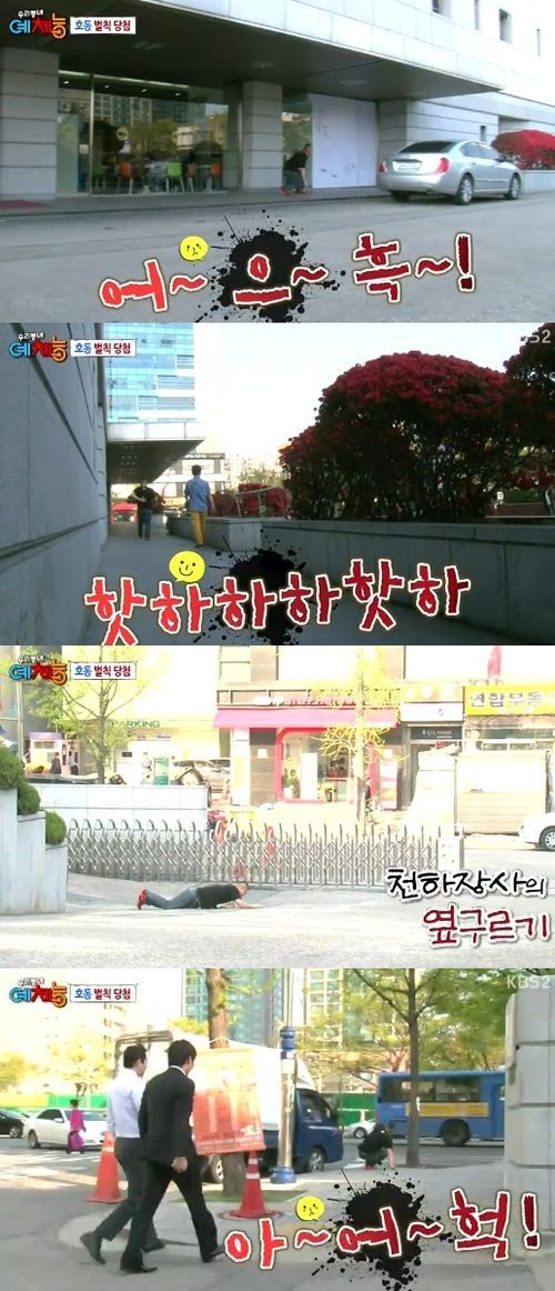 강호동이 앞구르기 벌칙으로 음료수를 사오는 굴욕적인 모습을 연출했다.