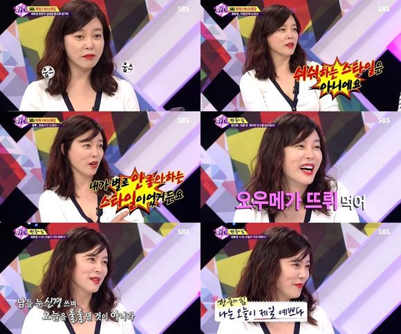 또한 절친한 친구인 개그우먼 정선희가 힘들때 "수면팩 꼭 하고 오메가뜨뤼 먹어"라는 말로 웃음을 선사한 것, MC 김희선을 향해 "내가 싫어하는 스타일이었다"라며 돌직구 멘트를 하는 모습 등 그녀 특유의 당당하고 밝은 모습은 많은 여성 시청자들의 시선을 사로잡으며 한편으로는 웃음을, 그리고 또 한편으로는 공감을 자아냈다.
