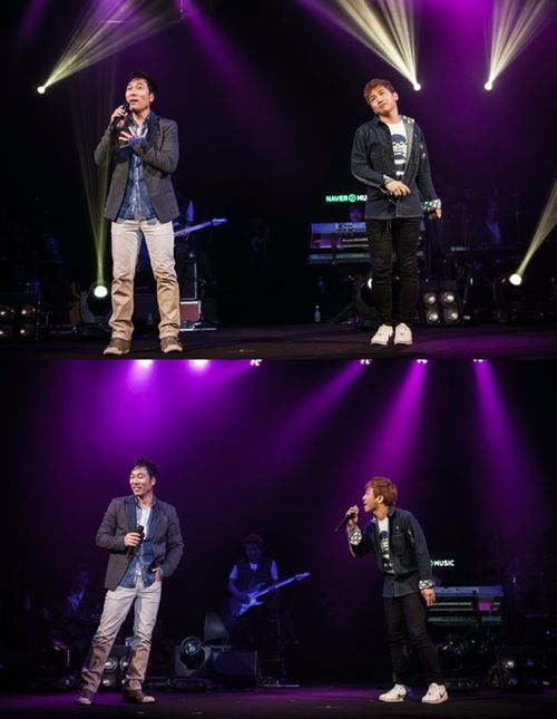 이문세는 지난 7일 서강대 메리홀에서 '네이버 뮤직 음악감상회 라이브- 대한민국 문세톱텐'을 열었다. 이날 이문세의 라이브 공연에는 유세윤이 깜작 등장, 애교 섞인 여자 목소리로 듀엣에 도전해 웃음을 자아냈다.