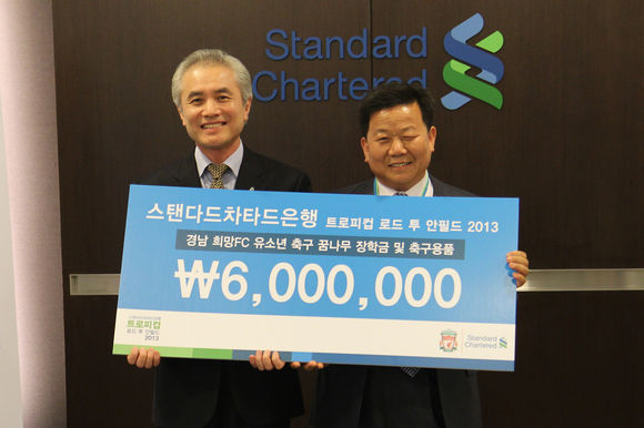한편 ‘스탠다드차타드은행 트로피컵 2013 로드 투 안필드 국제 아마추어 풋살 대회’ 결선 대회는 오는 21일 리버풀의 안방인 안 필드에서 열린다. 한국의 춘천풋살클럽을 비롯해 잉글랜드, 인도네시아, 케냐 등 12개국의 풋살 대표팀들이 참가한다.