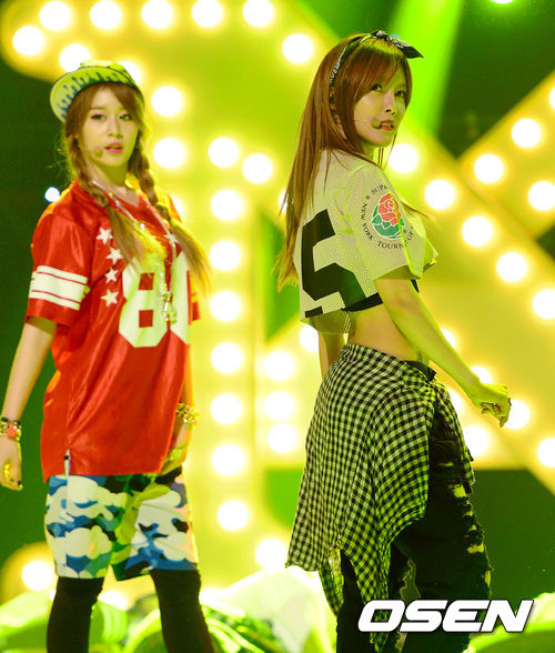 8일 오후 서울 광장동 유니클로 악스에서 진행된 MBC MUSIC '쇼! 챔피언'에서 걸그룹 티아라엔포 지연과 효민이 화려한 공연을 펼치고 있다.