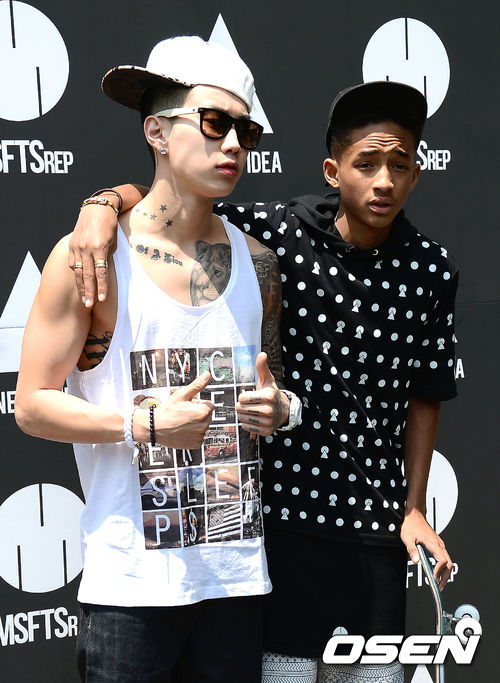 8일 오후 서울 강남구 신사동 GENERAL IDEA 압구정 플래그샵에서 진행된 '디자이너 최범석 제너럴 아이디어& 제이든 스미스 MSFTSrep 콜라보레이션' 행사에서 박재범, 제이든 스미스가 포토타임을갖고 있다.