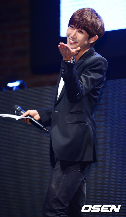 8일 오후 서울 강남구 청담동 클럽 엘루이 서울에서 걸그룹 나인뮤지스의 두 번째 미니앨범 ‘와일드(WILD)’로 컴백 쇼케이즈를 가졌다. MC를 맡은 제국의 아이들의 광희가 키스를 날리고 있다.