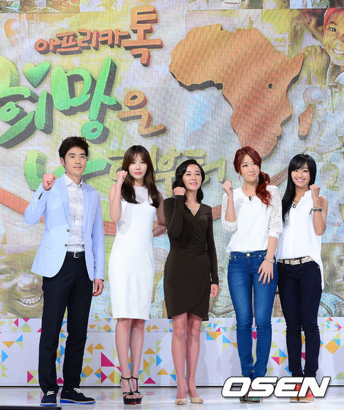 8일 오후 서울 상암동 SBS 프리즘타워에서 열린 '희망TV SBS' 제작발표회 및 현장공개에서 김강우, 김아중, 조민수, 소유, 효린이 포토타임을 갖고 있다.