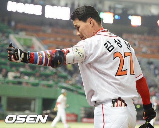 KIA에서 SK로 유니폼을 다시 갈아입은 김상현(33)의 일거수일투족이 화제다. 지난 6일 갑작스러운 2:2 트레이드로 정들었던 팀을 떠나야 했던 김상현은 7일 SK 데뷔전에서 4타수 3안타 1홈런으로 강한 인상을 심어줬다. 8회 김상현은 쐐기포를 치고 더그아웃으로 돌아오며 방송 카메라를 향해 엄지 손가락을 수줍게 들어 보이는 세리머니를 했다.