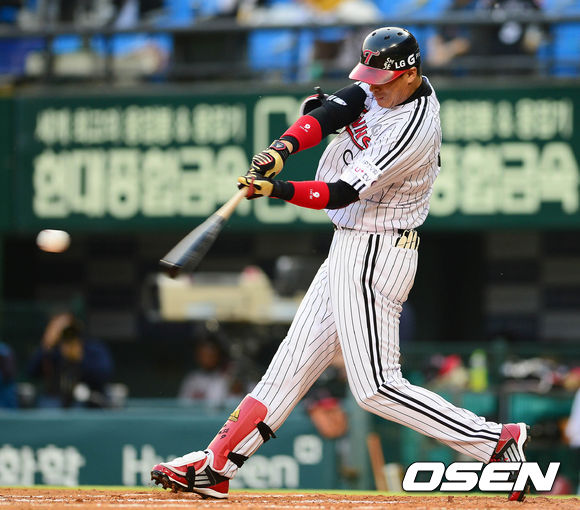 8일 오후 서울 잠실구장에서 열린 '2013 한국야쿠르트 세븐 프로야구' LG 트윈스와 넥센 히어로즈의 경기 2회말 1사 이병규가 중견수 앞 1루타를 치고 있다.