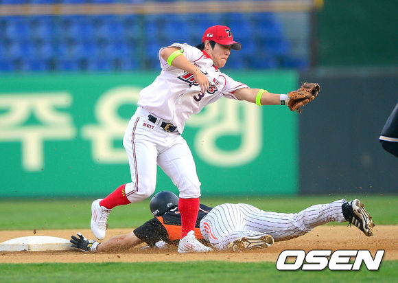 8일 오후 광주 무등구장에서 열린 '2013 한국야쿠르트 세븐 프로야구' KIA 타이거즈와 롯데 자이언츠의 경기, 1회초 2사 1루 롯데 김대우의 타석때 1루 주자 손아섭이 도루 성공하고 있다.