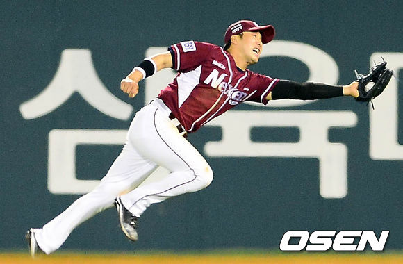 8일 오후 서울 잠실구장에서 열린 '2013 한국야쿠르트 세븐 프로야구' LG 트윈스와 넥센 히어로즈의 경기 5회말 1사 손주인의 뜬공을 이택근이 잡고 있다.