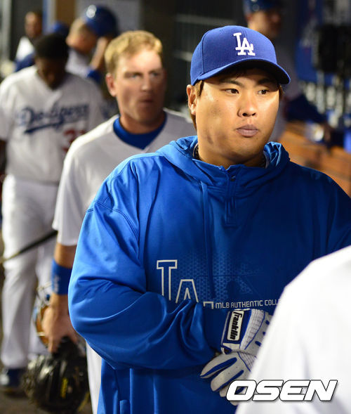 류현진을 비롯한 다저스 선수들이 아쉬운 표정으로 더그아웃을 나서고 있다./ dreamer@osen.co.kr