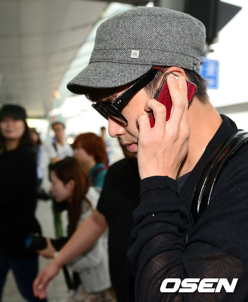 유노윤호가 통화를 하며 출국장으로 향하고 있다.