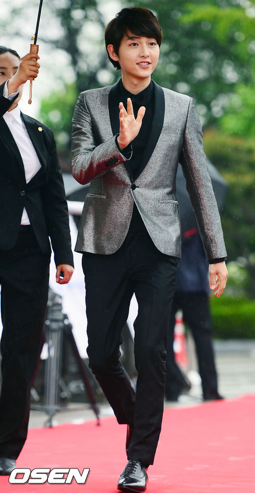 9일 오후 서울 동대문구 회기동 경희대학교 평화의전당에서 열린 '제49회 백상예술대상'에서 송중기가 레드카펫을 밟으며 입장하고 있다.