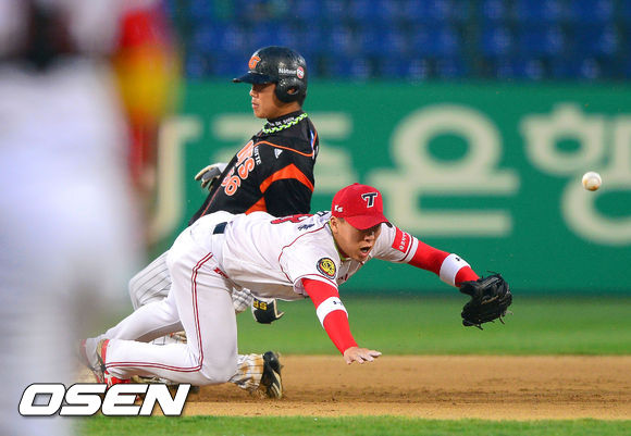 9일 오후 광주 무등구장에서 열린 '2013 한국야쿠르트 세븐 프로야구' KIA 타이거즈와 롯데 자이언츠의 경기, 2회초 2사 1,2루 KIA 양현종 선발투수의 와일드피칭때 안치홍 2루수가 공을 놓치고 있다. 그 사이 2루 주자 용덕한은 득점.