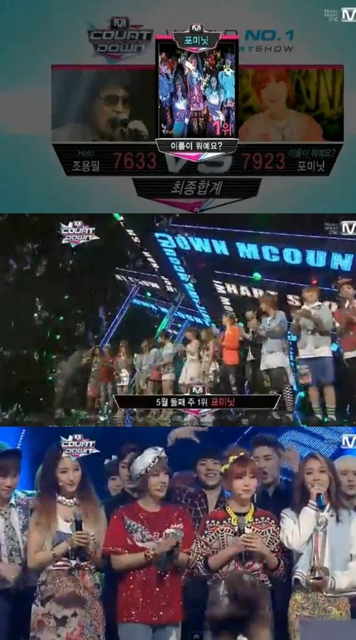 포미닛은 9일 방송된 케이블채널 Mnet '엠카운트다운'에서 가왕 조용필을 제치고 정상에 올랐다.