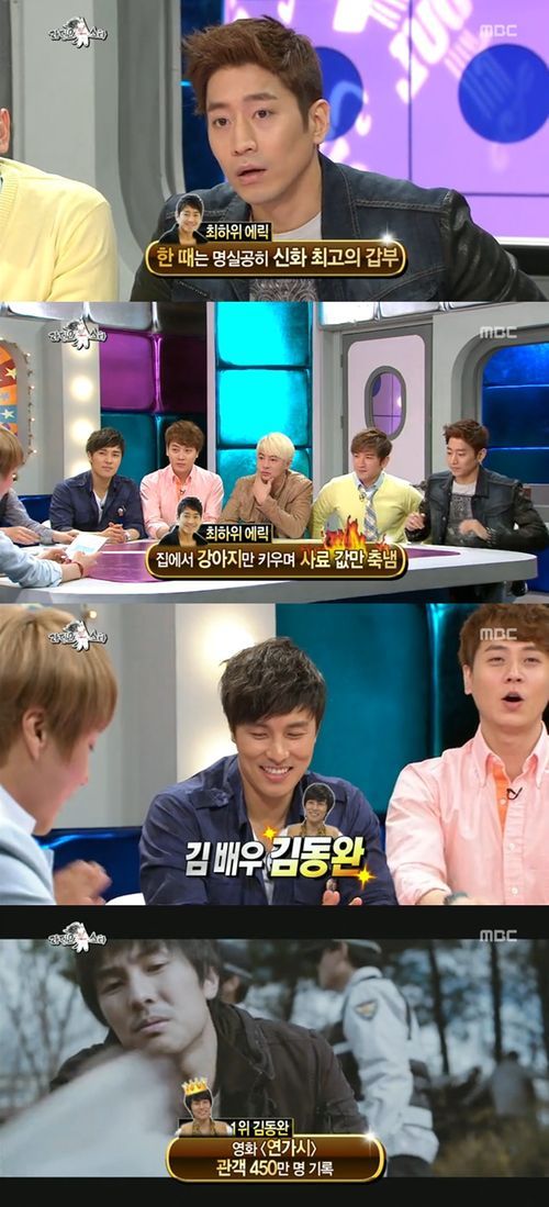 신혜성은 “신화 내에서 수입 서열 꼴찌는 에릭이다”며 “한때는 신화 최고의 갑부였으나, 1년 동안 개인 활동이 전무하고 ‘신화방송’ 외에는 집에서 강아지만 키우며 사료 값만 축냈다”고 밝혔다.