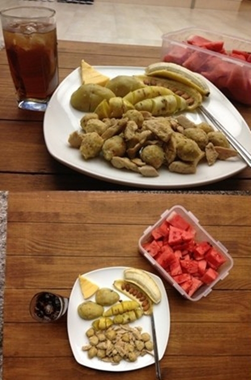 공개된 사진에는 하하를 위해 별이 손수 마련한 다이어트 식단이 보인다. 바나나, 감자, 아몬드, 치즈 등 건강식과 함께 제철과일 수박까지 준비했다.