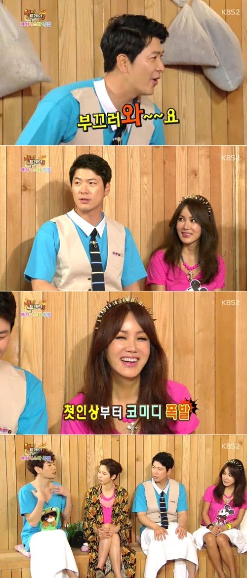 9일 방송된 KBS 2TV ‘해피투게더3’는 패셔니스타 특집으로 꾸며져 가수 엄정화, 배우 김상경, 방송인 김나영, 남성듀오 UV(유브이) 뮤지가 출연해 다양한 이야기로 입담을 과시했다. 특히 김상경은 엄정화가 “아직도 섹시한 말을 듣길 원한다”고 털어놨다.