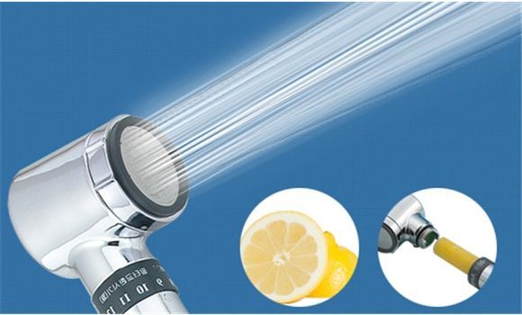 이 제품은 수돗물의 염소를 걸러주는 세라믹 필터와 비타민C를 방출하는 레몬필터로 구성되어 있으며 미세 살수판 을 통과한 물입자의 부서짐 효과가 극대화 되면서 수압이 3배 이상 증폭되며 폭포수의 최고 200배에 달하는 자연 음이온 까지 동시에 발생하는 똑똑한“샤워기”가 등장했다.