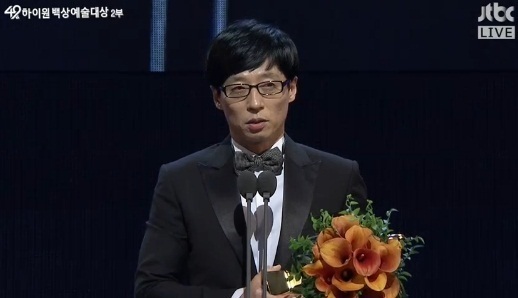 이어 “지난 2006년에 ‘백상’에서 TV 예능상을 받았었다. 그런데 올해는 이렇게 큰 상을 받아 정말 감사하다. 사실 집에는 쑥스러워서 이야기를 하지 않고 왔다. 사랑하는 아내와 지호, 장인어른, 장모님과 부모님에 감사드린다”며 “시상식이 끝나면 ‘무한도전’을 촬영하러 다시 가야 한다. ‘무한도전’, ‘런닝맨’, ‘해피투게더’ 식구들과 함께 이 기쁨을 누리고 싶다”고 덧붙였다.