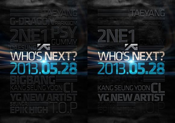 한편 YG는 지난 8일 오후 3시 공식 블로그를 통해 새로운 이미지를 공개했다. 해당 이미지에는 지난 6일 공개된 첫 번째 이미지와는 달리 다수의 아티스트 이름이 흑백으로 처리됐다. 그 결과 남은 아티스트는 빅뱅의 태양, 2NE1의 CL, 그룹 2NE1, 강승윤, YG 새 그룹이다. 이들 중 한 팀이 28일 전격 컴백 또는 데뷔할 것으로 보인다.