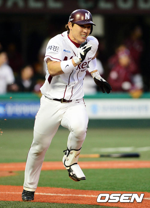10일 오후 서울 목동구장에서 열린 '2013 한국야쿠르트 세븐 프로야구' 넥센 히어로즈와 SK 와이번스의 경기 2회말 2사 2루 박동원이 좌익수 앞 1루타를 치고 달리고 있다. 좌익수의 실책으로 2루주자 유한준은 홈인, 박동원은 2루까지 진루.