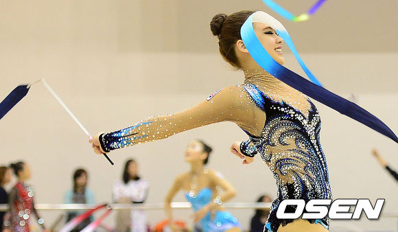 리듬체조 국가대표 선발전에 출전한 손연재가 리본 연기를 선보이고 있다.