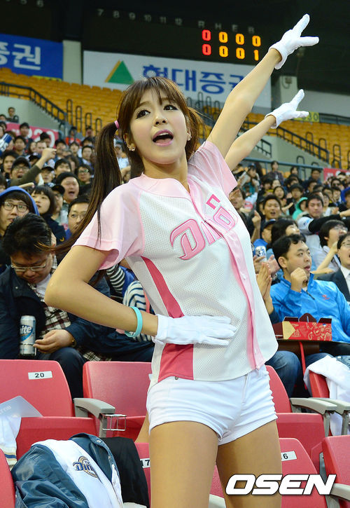 10일 오후 서울 잠실야구장에서 열린 2013 한국야쿠르트 세븐프로야구 두산 베어스와 NC 다이노스의 경기, NC 치어리더 김연정이 화려한 공연을 펼치고 있다.