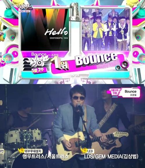 조용필은 10일 오후 방송된 '뮤직뱅크'에서 곡 ‘바운스’로 샤이니의 '와이 쏘 시리어스(why so serious)'를 제치고 정상에 등극했다.