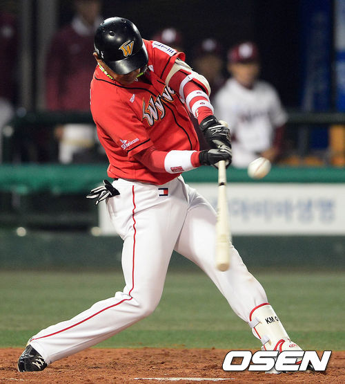 10일 오후 서울 목동구장에서 열린 '2013 한국야쿠르트 세븐 프로야구' 넥센 히어로즈와 SK 와이번스의 경기 4회초 1사 2,3루 김강민이 우익수 오른쪽에 떨어지는 2타점 2루타를 치고 있다.