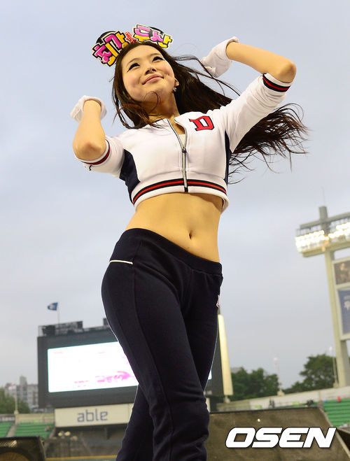 10일 오후 서울 잠실야구장에서 열린 2013 한국야쿠르트 세븐프로야구 두산 베어스와 NC 다이노스의 경기, 두산 치어리더가 화려한 공연을 펼치고 있다.