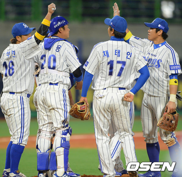 경기종료 후 삼성 선수들이 승리의 기쁨을 나누고 있다./ soul1014@osen.co.kr