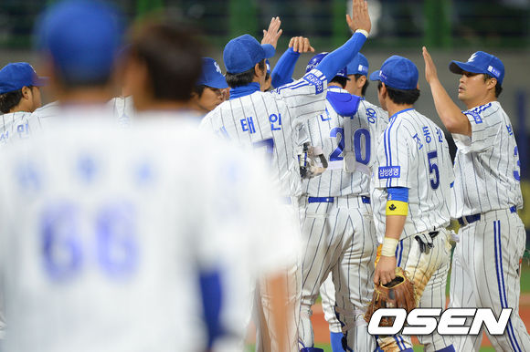 경기종료 후 삼성 선수들이 승리의 기쁨을 나누고 있다./ soul1014@osen.co.kr