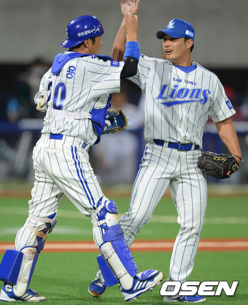 경기종료 후 삼성 선수들이 승리의 기쁨을 나누고 있다./ soul1014@osen.co.kr