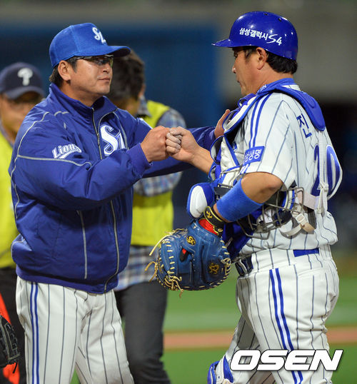 류중일 감독,'갑용아! 오늘 도루 저지가 좋았어'