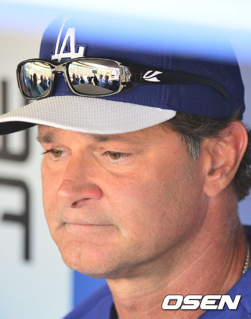 11일(이하 한국시간) 미국 캘리포니아 로스앤젤레스 다저스타디움에서 열리는 LA 다저스와 마이애미 말린스의 경기를 앞두고 다저스 돈 매팅리 감독이 취재진과 대화를 나누고 있다.