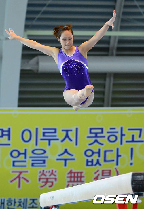11일 오전 서울 태릉선수촌에서 열린 기계체조 국가대표 선발전 겸 주요 국제대회 파견선수 선발전에서 허선미가 평균대 연기를 선보이고 있다.