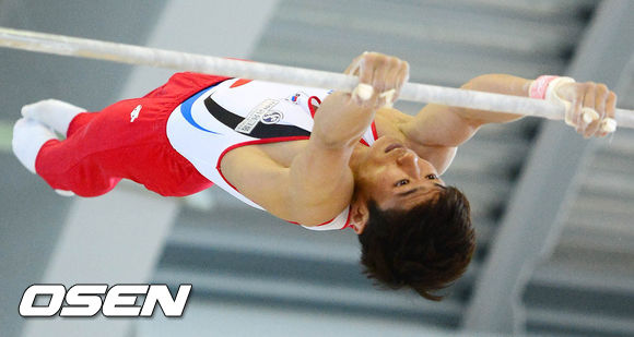 11일 오전 서울 태릉선수촌에서 열린 기계체조 국가대표 선발전 겸 주요 국제대회 파견선수 선발전에서 양학선이 철봉 연기를 하고 있다.