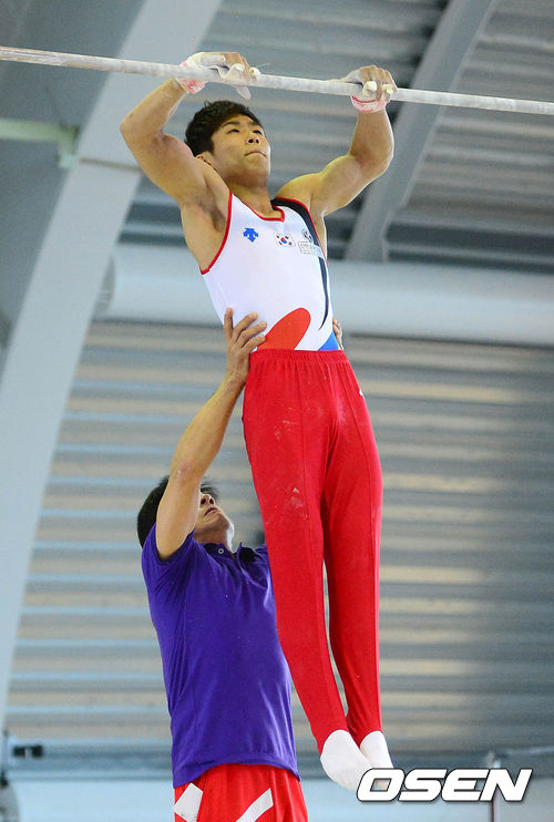 11일 오전 서울 태릉선수촌에서 열린 기계체조 국가대표 선발전 겸 주요 국제대회 파견선수 선발전에서 양학선이 철봉 연기를 하고 있다.