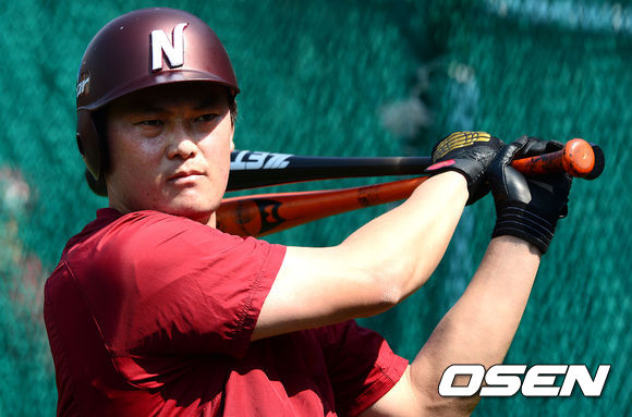 11일 오후 서울 목동야구장에서 열리는 '2013 한국야쿠르트 세븐 프로야구' 넥센 히어로즈와 SK 와이번스의 경기, 경기에 앞서 넥센 이성열이 타격 훈련을 하고 있다.